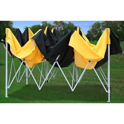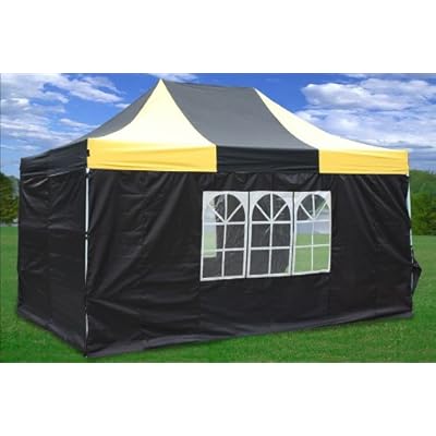 Frame Material Strong steel frame and strong durable nylon connectorsTop Cover Material260g Polyester with PVC coated WaterproofSide Wall Material210 D Oxford Top Canopy Color Yellow BlackSidewall Color BlackWeight 73 PoundsMain Pole Diameter 1-1/8" x 1-1/8", 1 "x 1"Carry bag Black